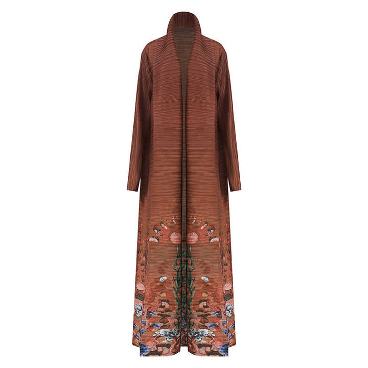 2024 Latest Abaya Designs Miyake Pleated Print Abaya Dubai Modest Dress Ladies Casual Open Abaya