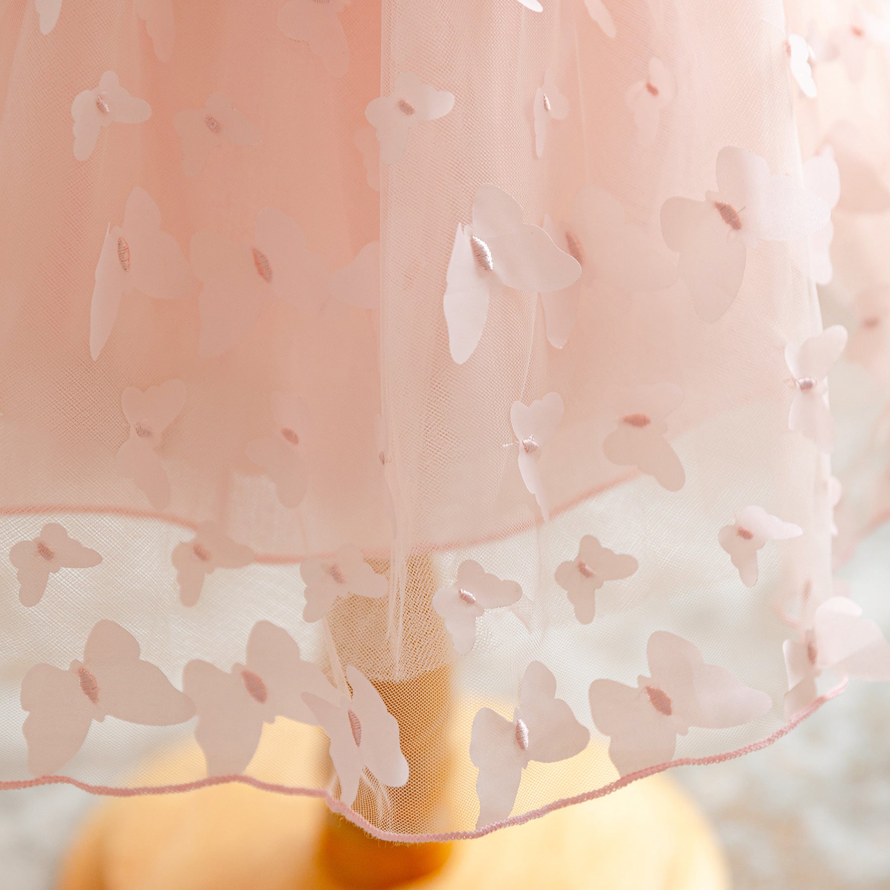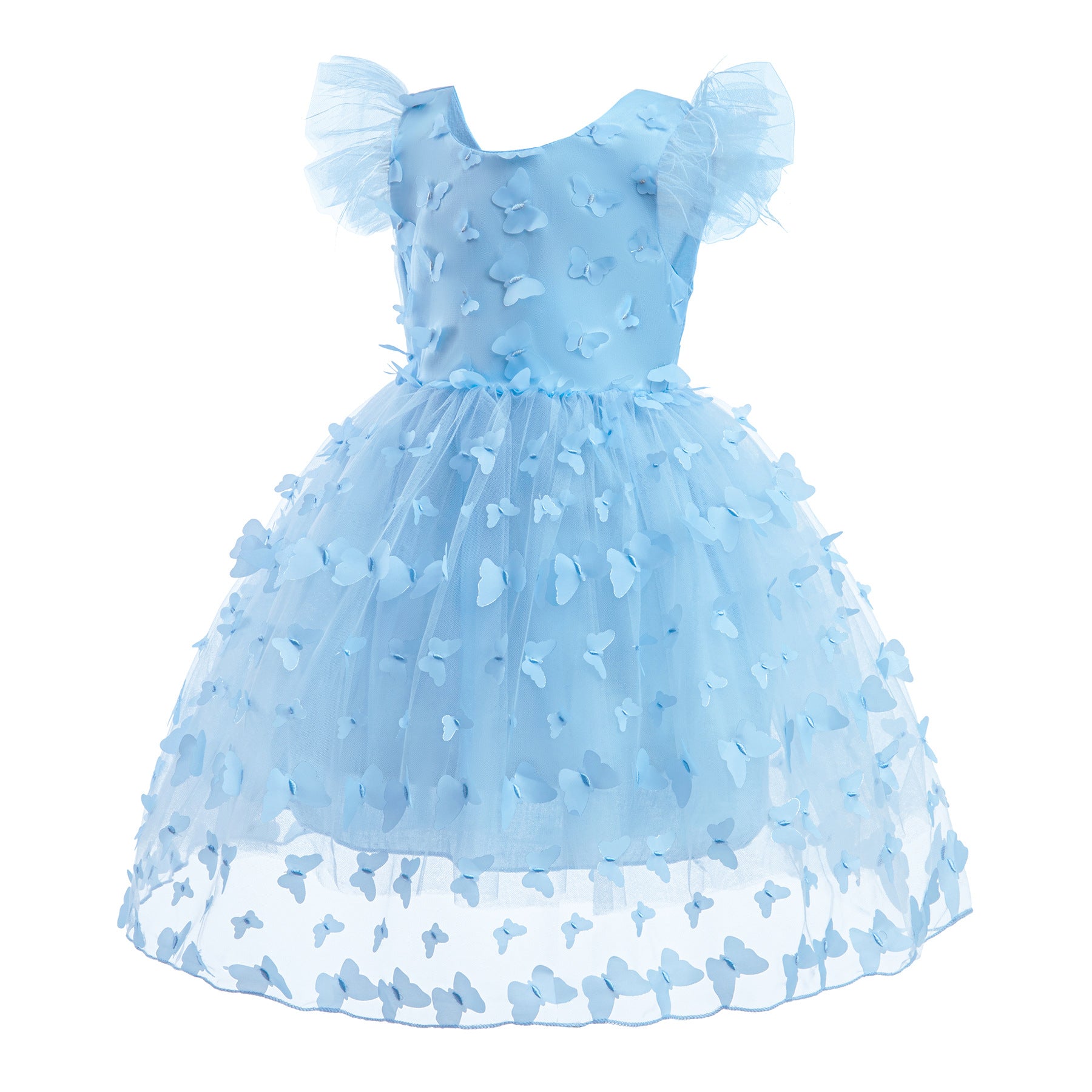 فستان الأميرة المطرز بالريش والفراشات ثلاثية الأبعاد للأطفال ملابس للفتيات