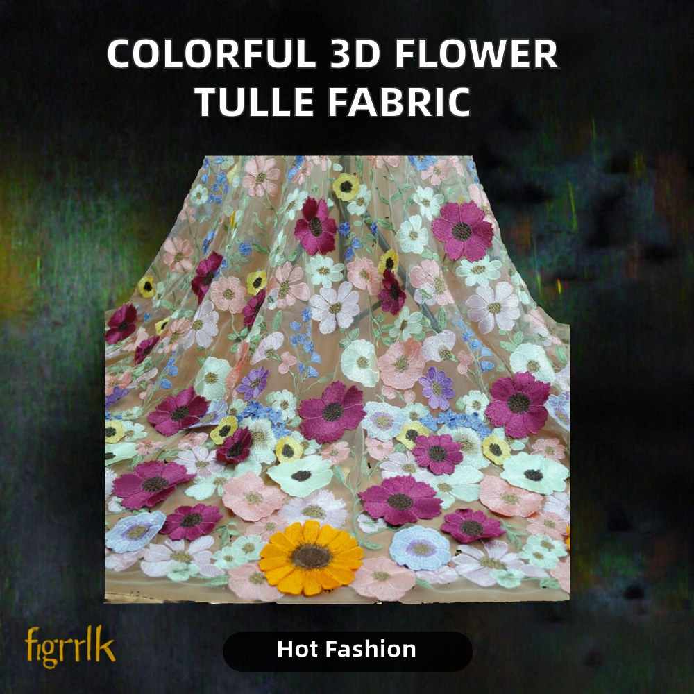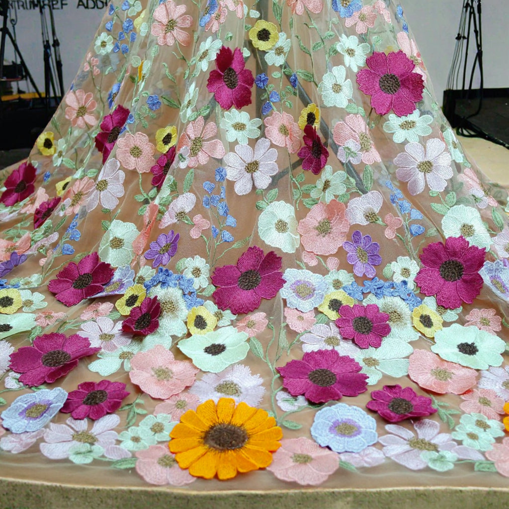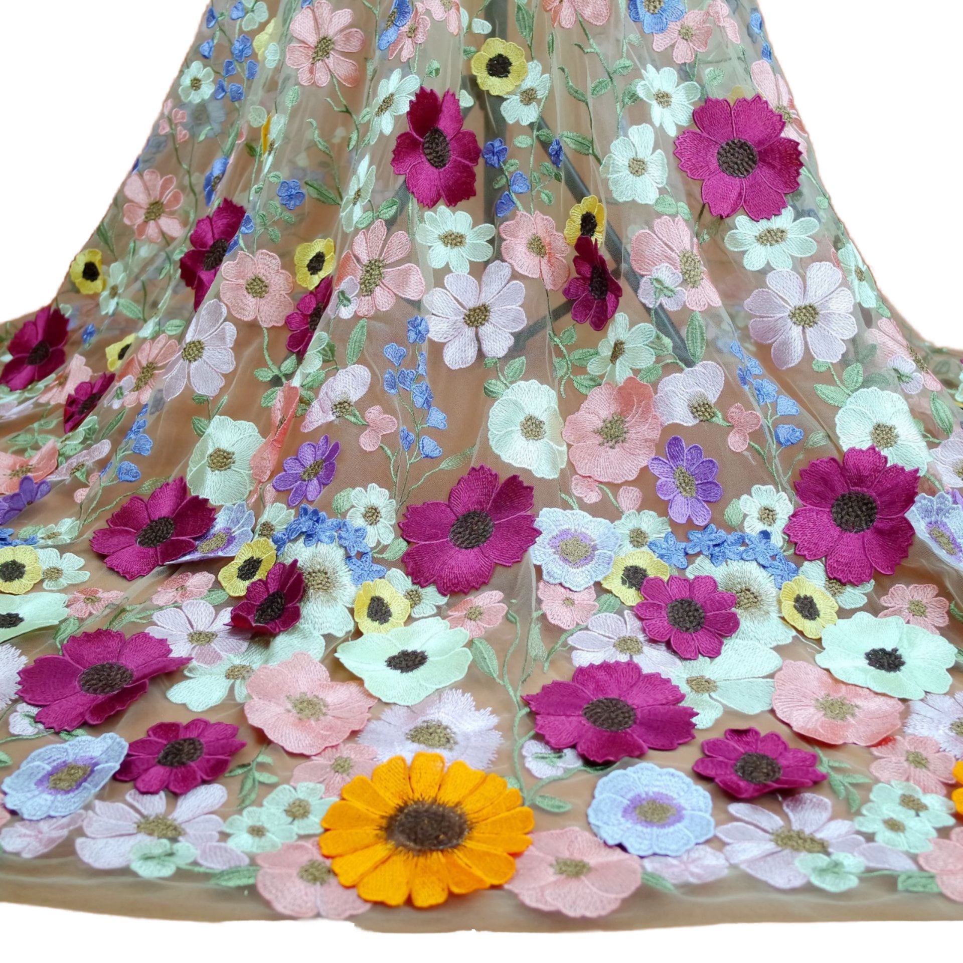 صوفي واسعة ملونة من البوليستر قماش تول مطرز شبكة 3D الزهور زين الدانتيل للقمصان النسائية فساتين الزفاف