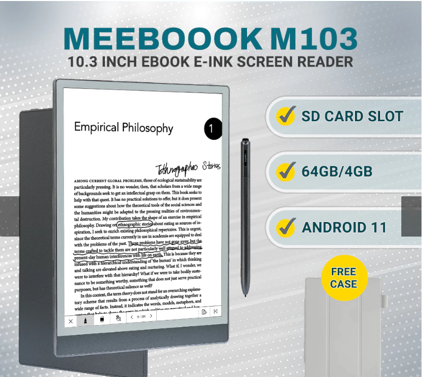 قارئ إلكتروني عالي الجودة Meebook M103 بنظام أندرويد، جهاز لوحي بشاشة حبر إلكتروني 10.3 بوصة، جهاز تعليمي للأطفال وقارئ كتب إلكترونية