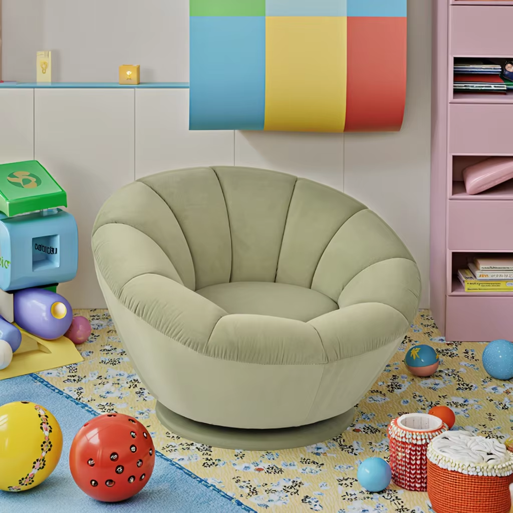 كرسي كارلفورد العصري الدوار المريح بتصميم اليقطين من المخمل الأخضر لغرفة الأطفال وغرفة المعيشة