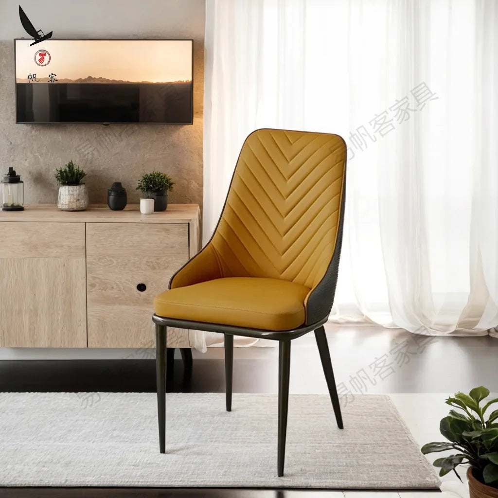 كرسي عشاء فاخر على الطراز الاسكندنافي خفيف الوزن من الخشب الصلب والجلد الخلفي كرسي طعام بيج فاتح لغرفة الطعام كرسي المطبخ