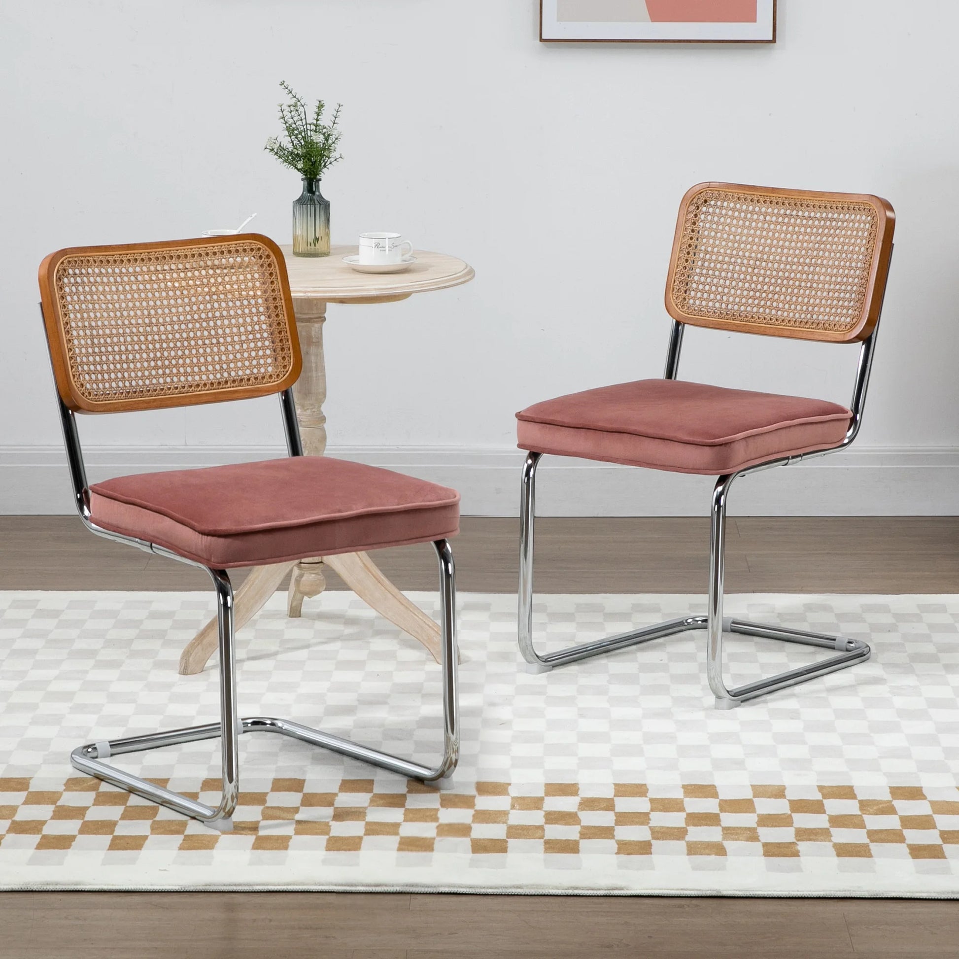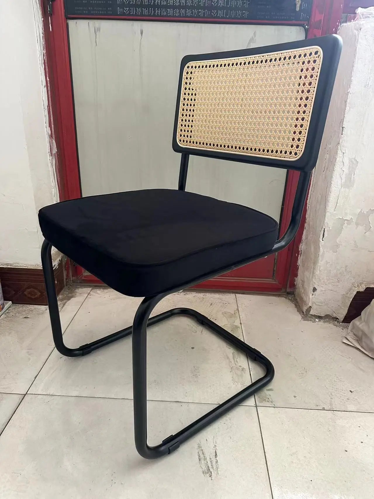 طقم 4 كراسي حديثة لتناول الطعام في المزرعة كراسي مطبخ قماش أسود مطلي بالكروم قصب الروطان ظهر مستقر لتطبيق الفندق