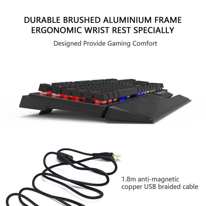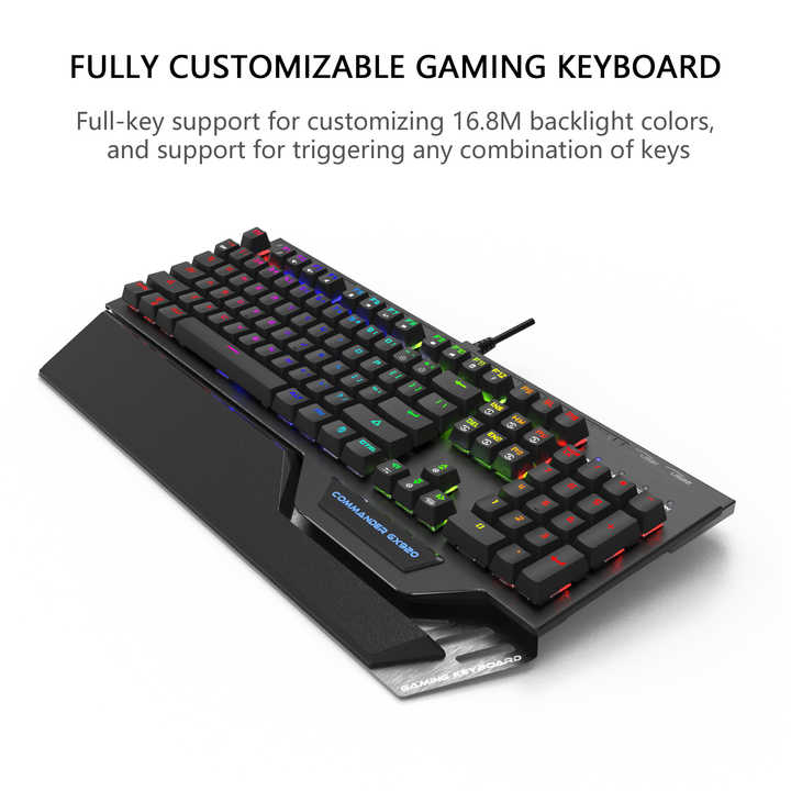 AIKUN GX920 Wired Gaming Keyboard with RGB Backlit, Mechanical Switches, Full-Size Keyboard, 2 USB Hubs, Black