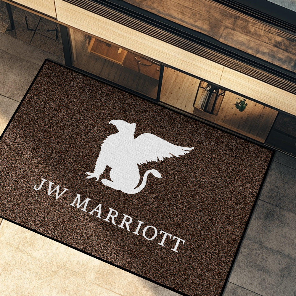 بساط للأرضية مطبوع حسب الطلب من بولي بروبلين مع سجادة مطاطية مصنوعة بأسفل ، سجادة ترحيب للاستخدام المنزلي ، شعار مخصص