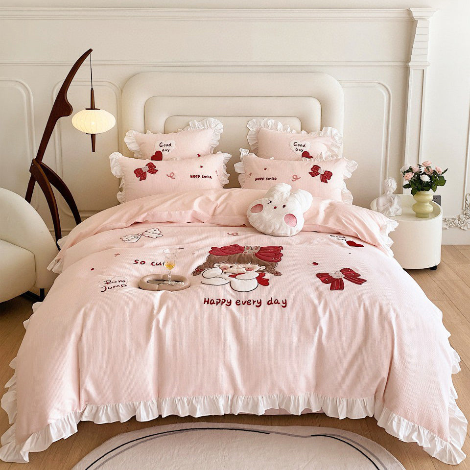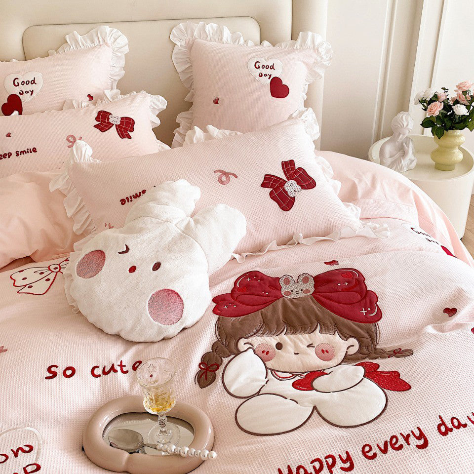 الفتيات جميل غطاء لحاف مطرز الوردي القطن الكرتون الاطفال'