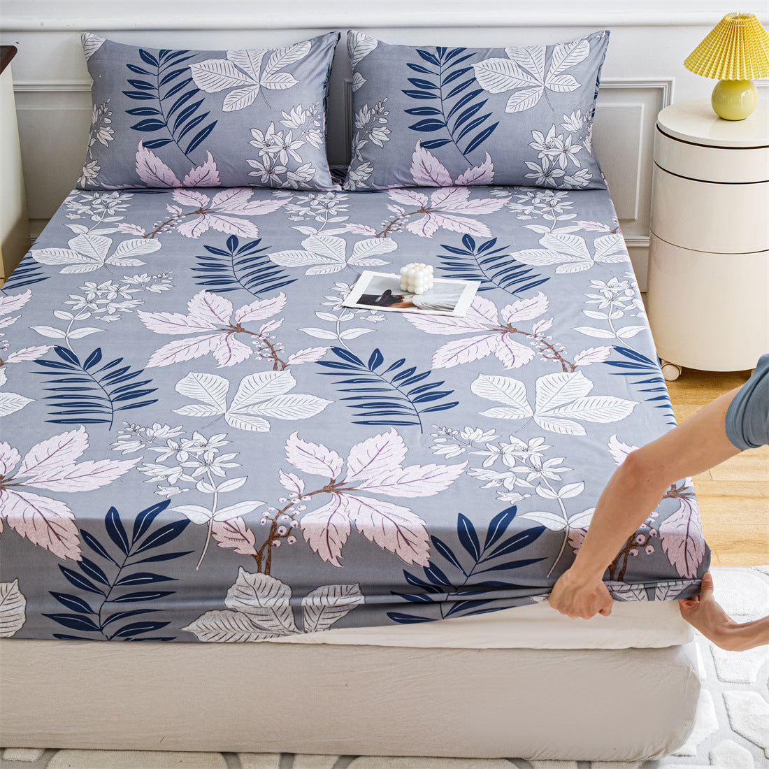 طقم مفروشات مفروشات بطباعة زهور قطعة واحدة أغطية حماية مراتب تنفس
