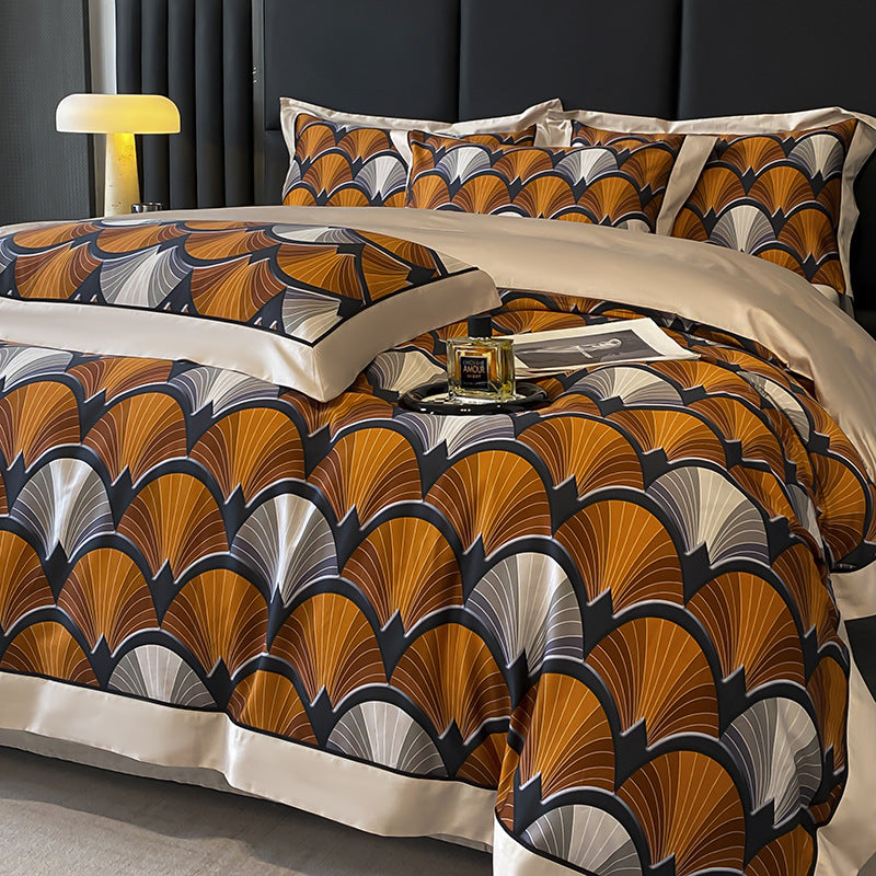 طقم مفارش سرير علوي قطني فاخر طباعة هندسية راقية غطاء لحاف من أربع قطع للمنزل/الفندق بجودة عالية