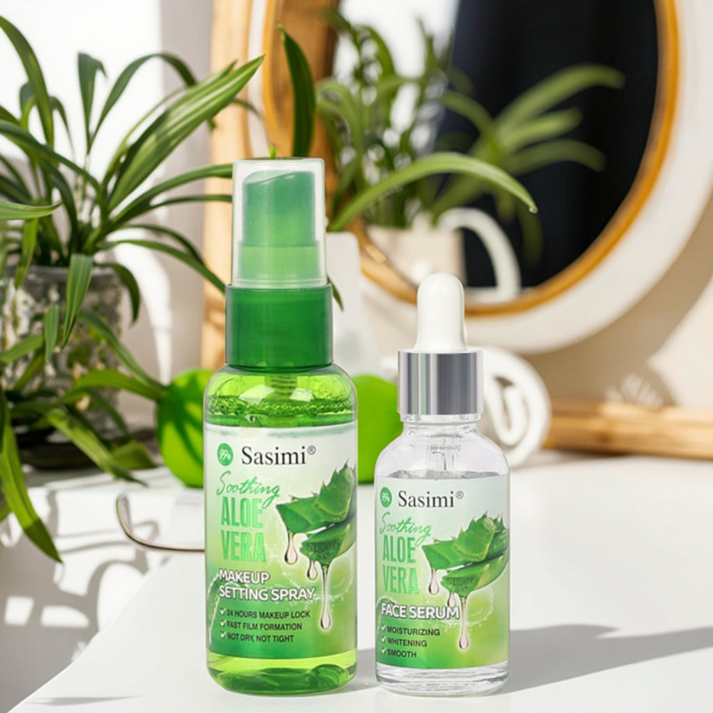 جهاز تجميل 2 في 1 لساسيمي بخاخ لوضع مستحضرات التجميل مبيض مضاد لسن السن سيروم الوجه حمض الهيالورونيك العشبي الألوة فيرا مثبت ماكياج