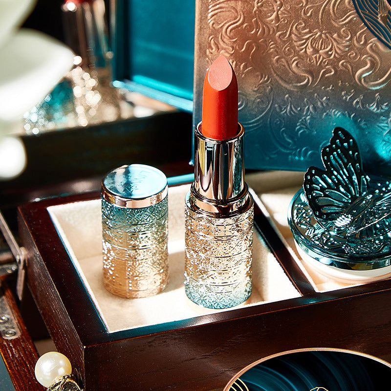 طقم مكياج LINNSZ مكون من 4 قطع: أحمر شفاه، كريم BB وسادي، كريم أساس بفرشاة فراشة، قلم كحل، علبة هدايا لعيد الحب، مجموعة تجميل