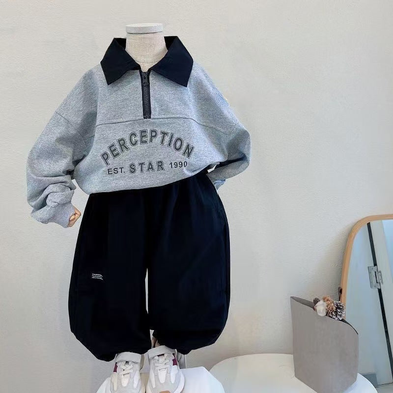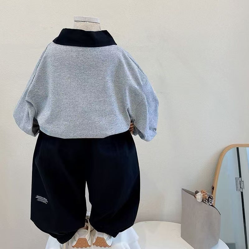 ملابس أطفال جديدة للأولاد من 1-5 سنوات، تي شيرت طويل الأكمام بحروف + بنطلون، مجموعة ملابس أطفال من قطعتين