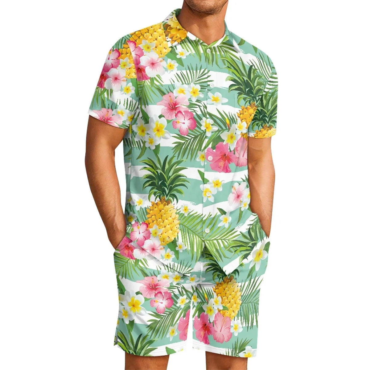 مخصص الرجال عارضة هاواي الصيف مجموعة قصيرة 2 قطعة ملابس الشاطئ زر قصيرة الأكمام قميص السراويل دروبشيبينغ الملابس