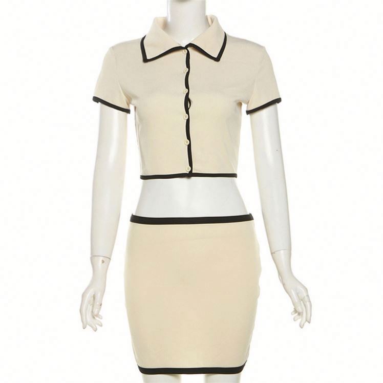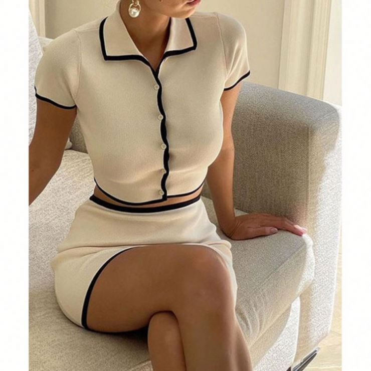 الربيع والصيف المرأة الجديدة سترة بأكمام قصيرة طية صدر السترة مثير تنورة الورك دعوى الملابس النسائية