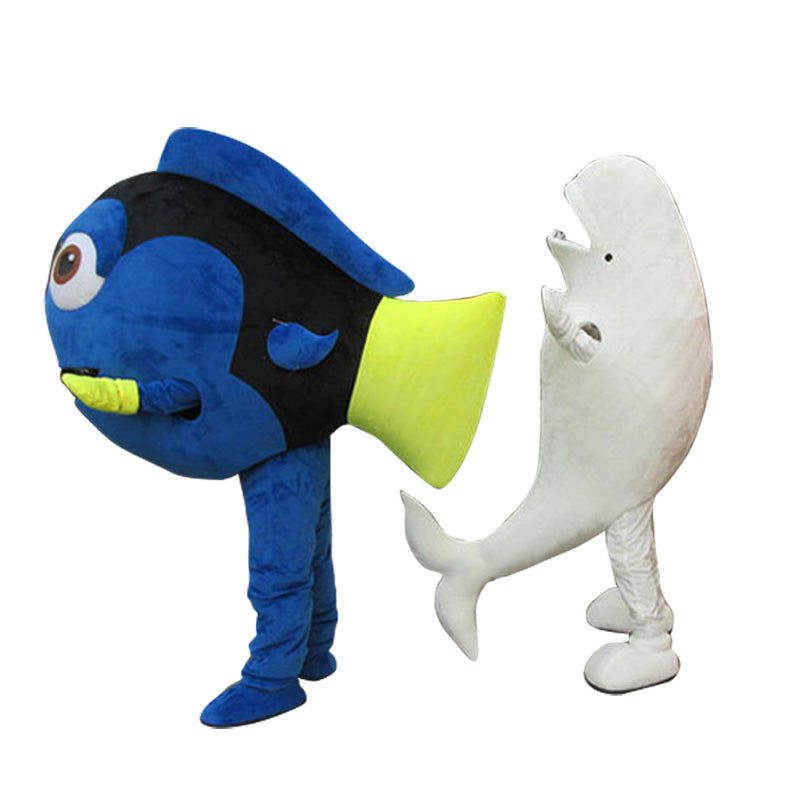 مخصص الدلفين المحيط شخصية الكرتون الدلافين الكبار المشي الدعائم الحيوان ملابس التميمة دمية المسرح أداء زي
