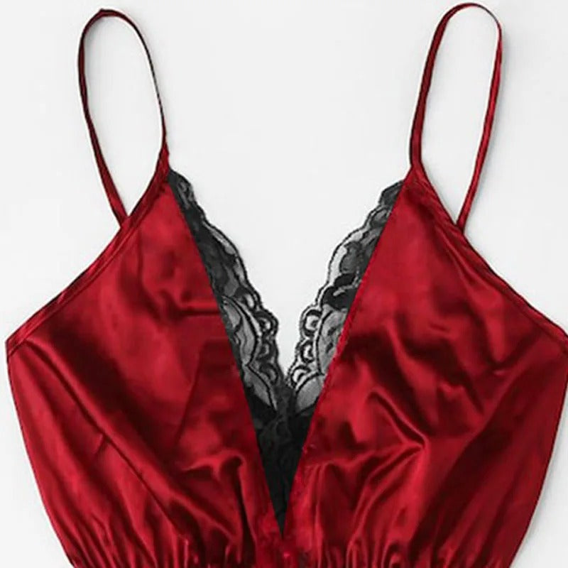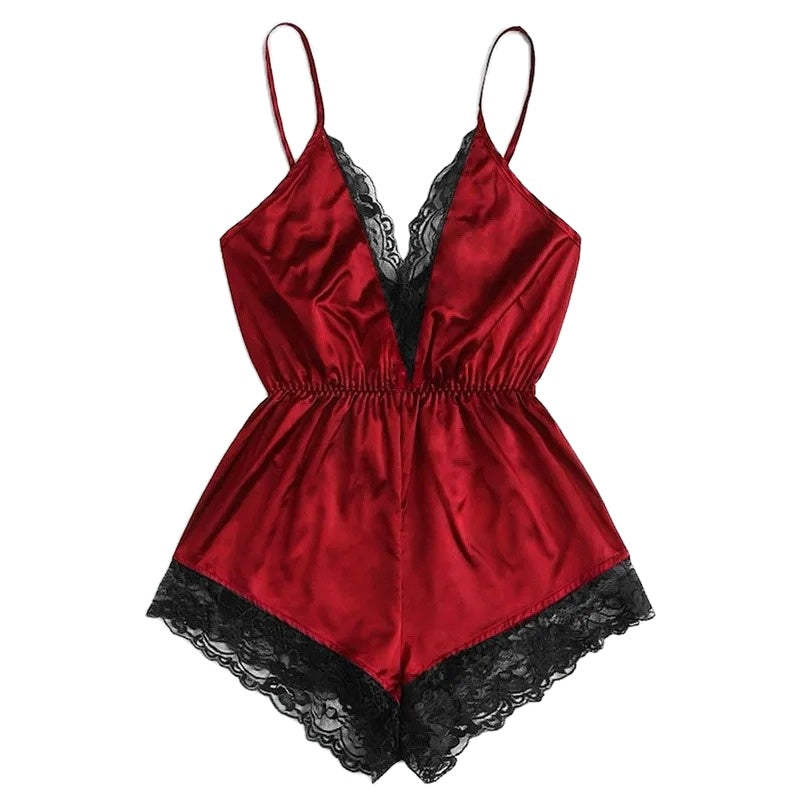 ملابس داخلية مثيرة للمنزل، قميص نوم أحمر من الدانتيل بمقاس كبير 3XL، سهل التنظيف، بلون موحد للسيدات