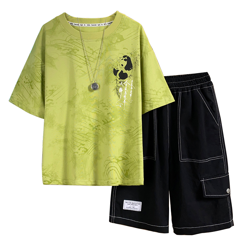 أطقم ملابس كاجوال للأطفال من BCA بتصميم الدب الصيني اللطيف، بدلة رياضية صيفية للأولاد من عمر 5 سنوات فما فوق، تتضمن تي شيرت برقبة وسروال قصير