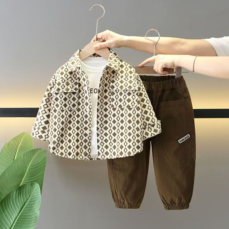 مجموعة ملابس للأولاد 3 قطع للأعمار من 1 إلى 8 سنوات، ملابس عادية بأكمام طويلة، مجموعة ملابس أطفال من بوتيك الموضة