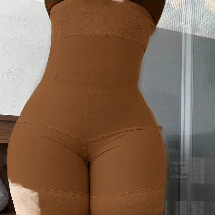 مشد نسائي عصري لتنحيف الجسم بحمالات رفيعة ودانتيل، خصر عالي لرفع المؤخرة والتحكم في البطن، فاجاس كولومبية لتشكيل الجسم