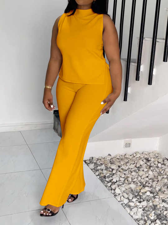 2024 Summer African Plus Size Women Solid Color Elegant Streetwear Casual Sleeveless 2 Piece Set Pants