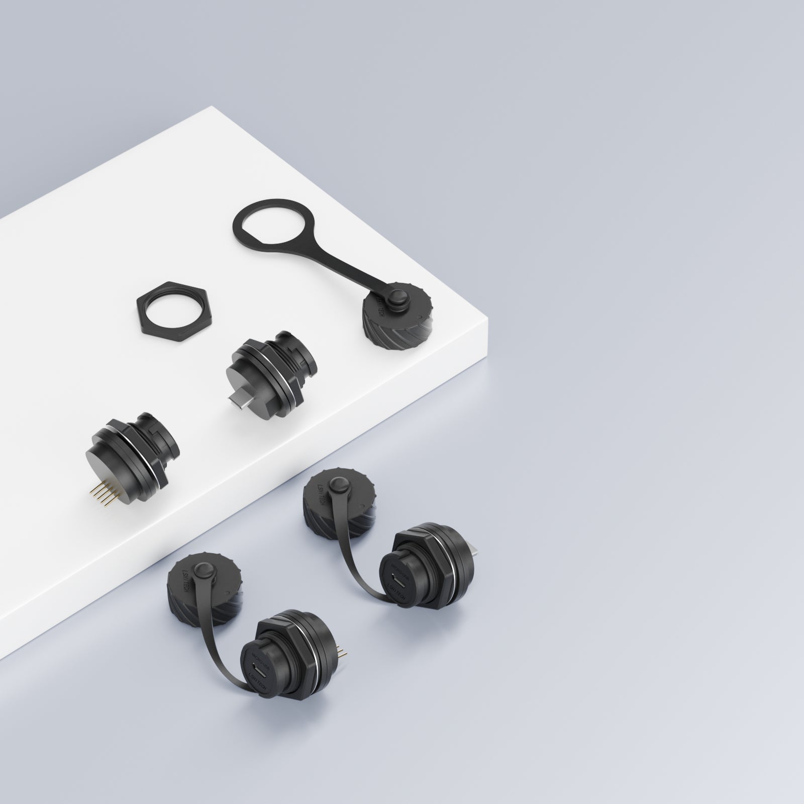 موصل مقاوم للماء بمقبس USB صغير M20 من Lshitech مزود بوصلة نحاسية وغطاء من النايلون وغطاء كابل مقبس USB صغير