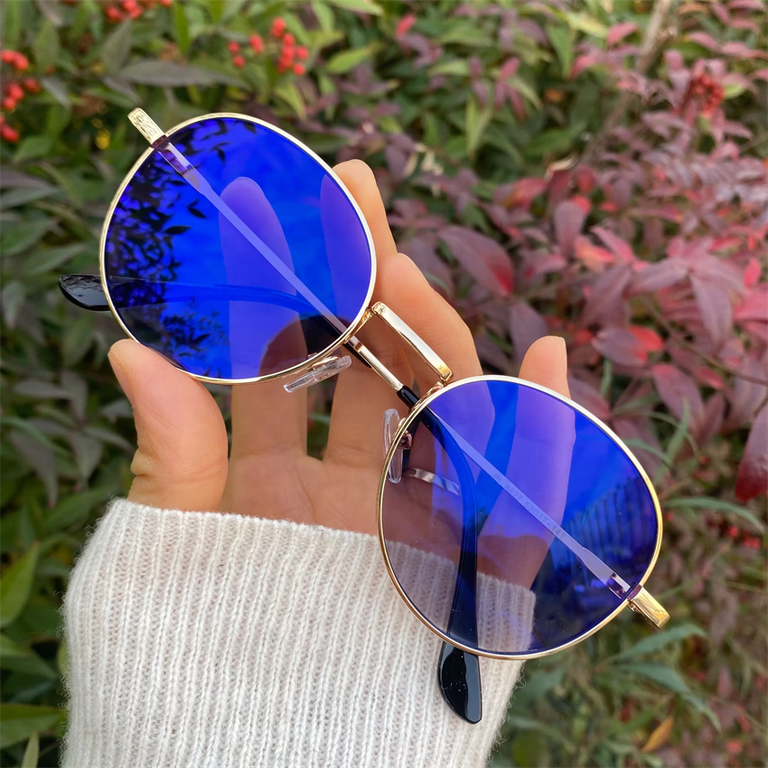 نظارات تصوير ضوئي بسيطة للكمبيوتر قطع أزرق اللون عدسات دائرية معدنية مانعة للانعكاس Bleu للنساء والرجال والنساء وللجنان