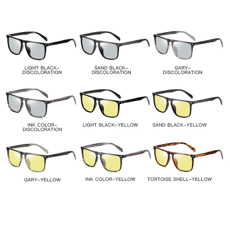 نظارات شمسية سوداء عالية الجودة متغيرة اللون نظارات شمسية مربعة للرجال مستقطبة لونية اللون