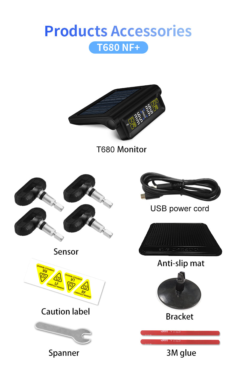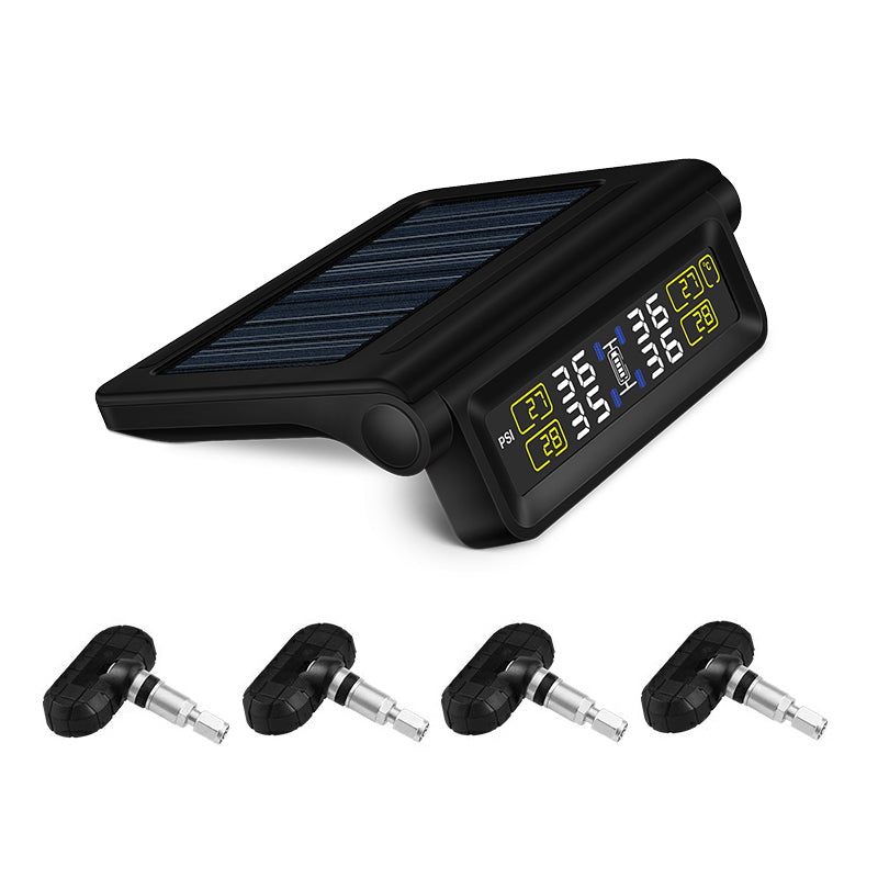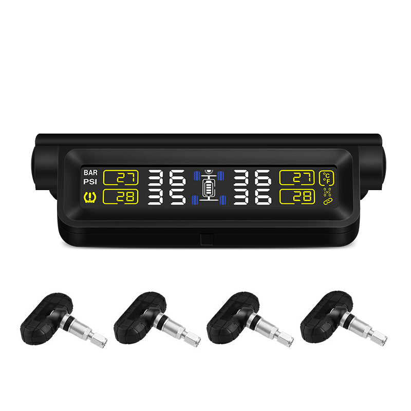 نظام مراقبة بضغط إنذار إطارات السيارة TPMS، جهاز تحكم أوتوماتيكي في السطوع، لاسلكي يعمل بالطاقة الشمسية، مزود بـ 4 مستشعرات، ملحقات الديكور
