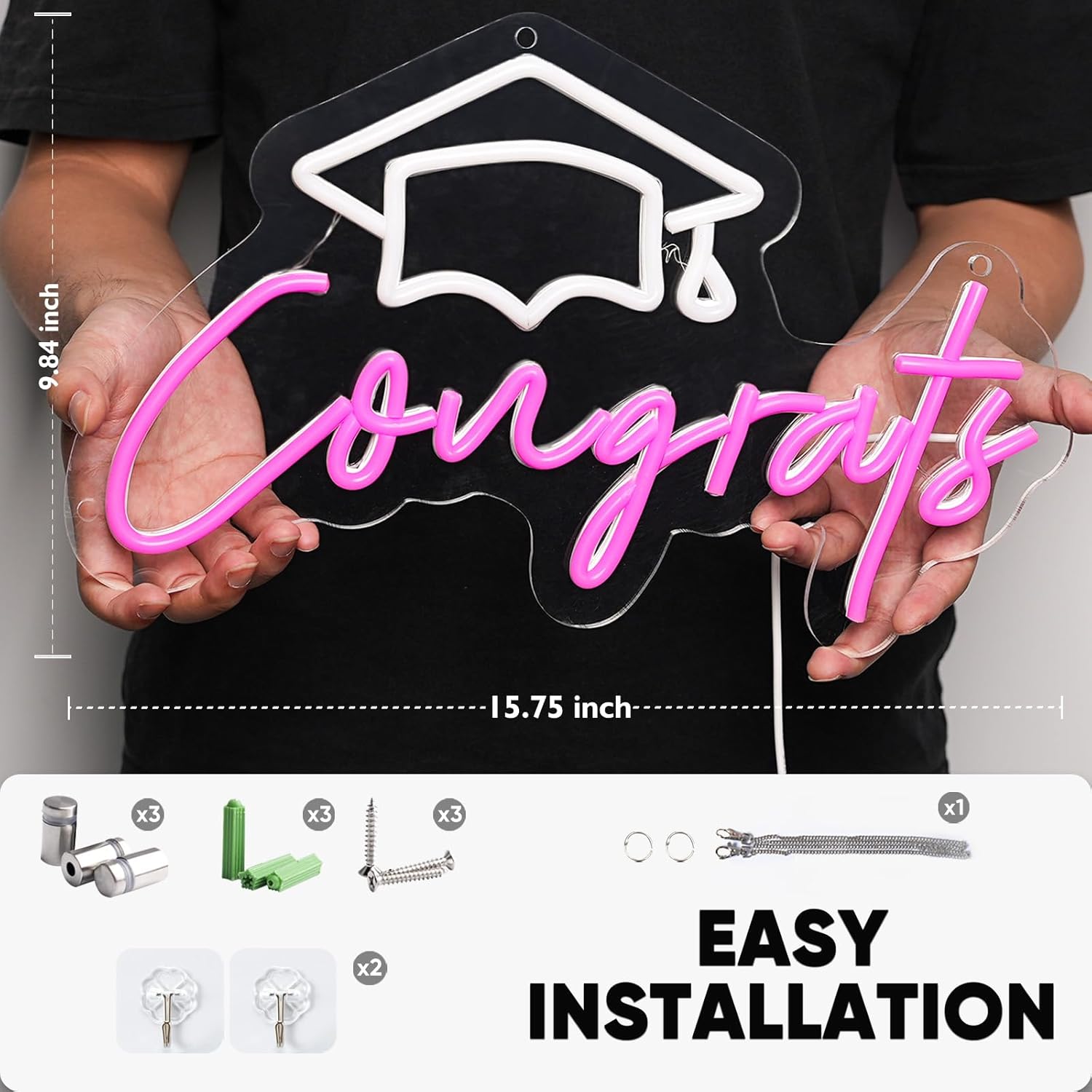 هدية تخرج للجامعات، لافتة تهنئة بتخرج، تعمل ببطارية USB، لافتة نيون على شكل قبعة تخرج، ديكورات حفلات التخرج، خلفية جدارية فنية