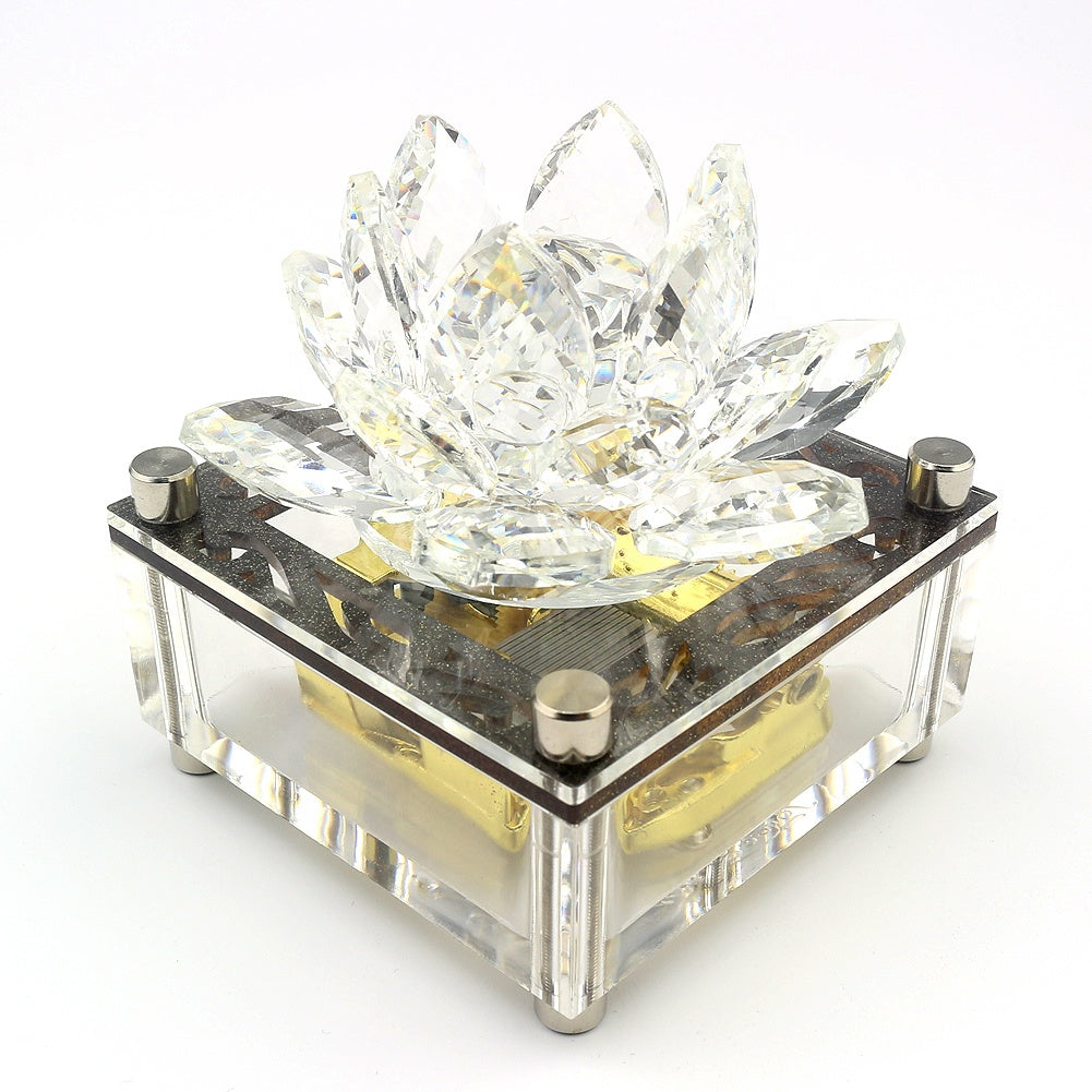 صندوق موسيقى كريستالي شفاف بتصميم زهور دوار بالجملة، هدية تسويقية إبداعية بسعر منخفض، بيع مباشر من المصنع، تذكار