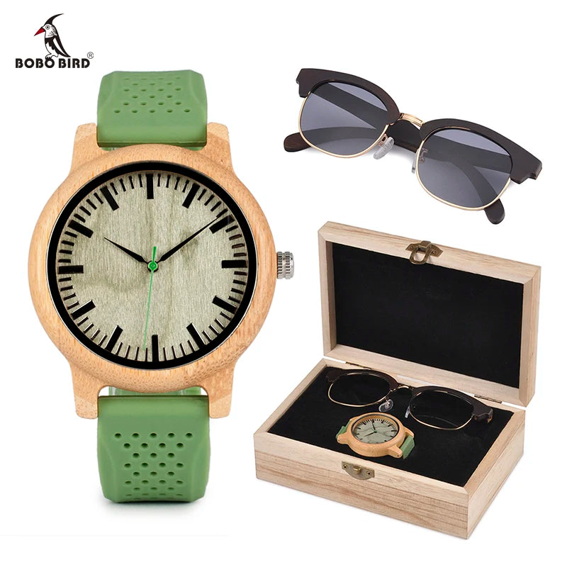 دروبشيبينغ المنتجات الساخنة مخصص شعار رجل الساعات الخشبية حلقة من جلد حزام مع الكمبيوتر الخيزران النظارات الشمسية طقم هدايا