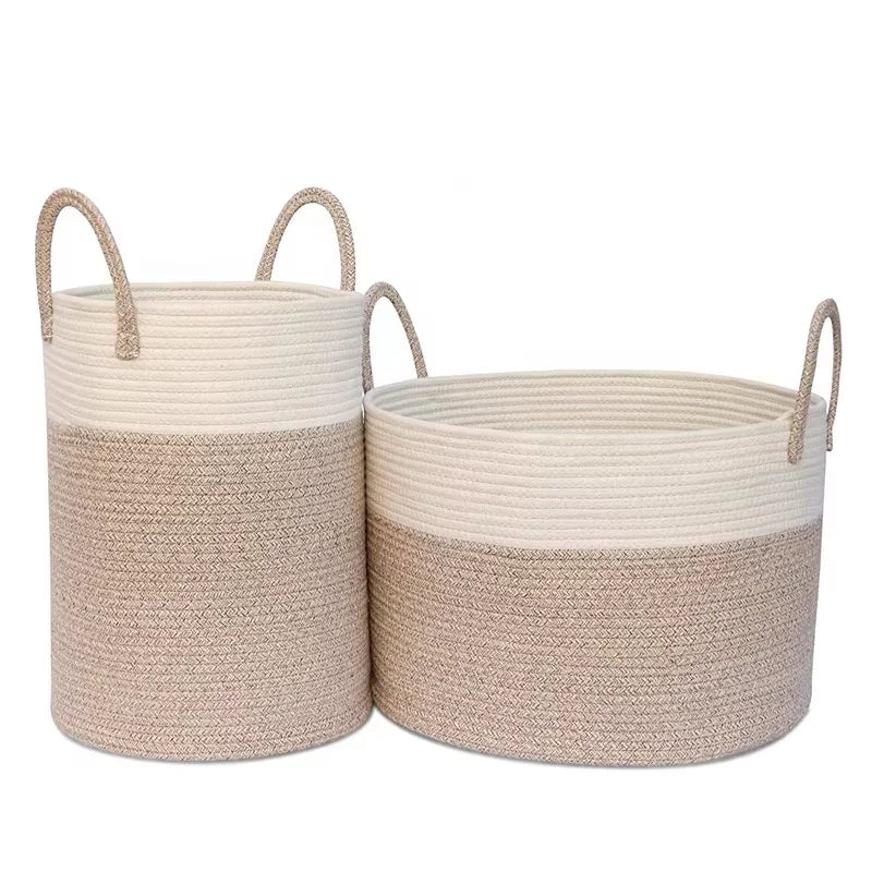 سلة ألعاب منسوجة بسعة كبيرة بسعر الجملة، تصنيع حسب الطلب، سلة من حبل القطن مع مقابض طويلة للبطانيات والوسائد