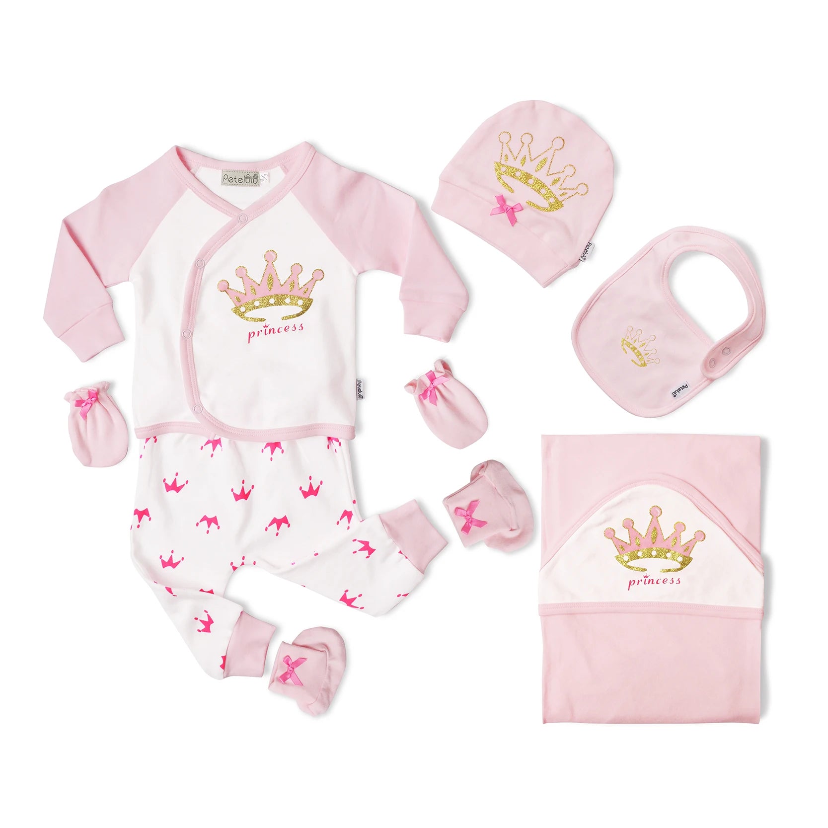 طقم ملابس أطفال حديثي الولادة من بيتيلولو، 7 قطع، يتضمن مريلة وسروال وشورت وقفازات وجوارب وبطانية، من عمر 0-3 أشهر
