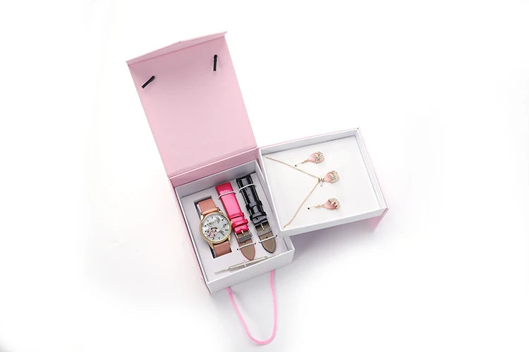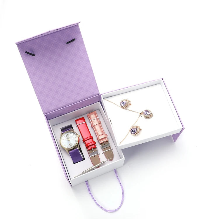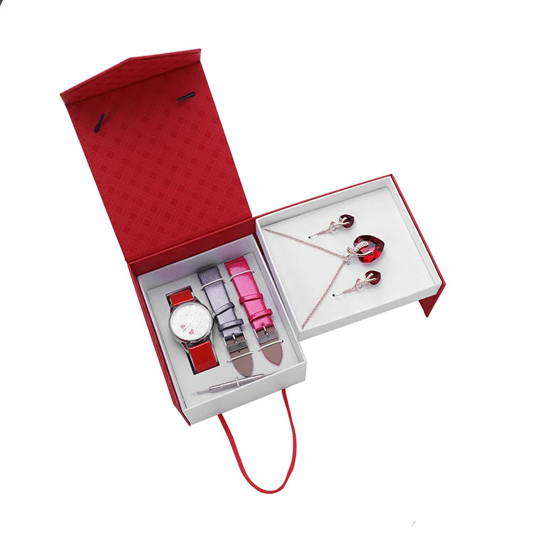 من المألوف ساعة كوارتز عقد للسيدات حلق مجوهرات لل Women'S طقم هدايا