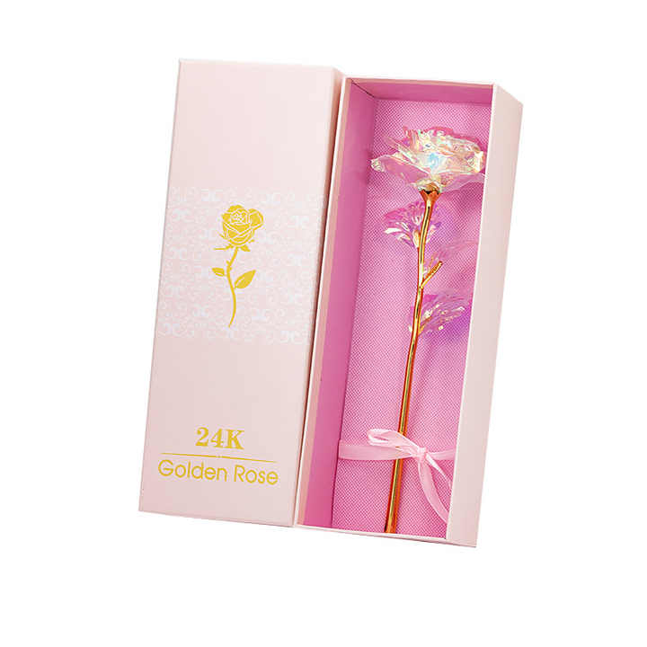 Plated Holiday Present Wedding Party Decoration Artificial Valentine's Day Gift Rose Flower Gold with Pink Gift Box 24K Popular