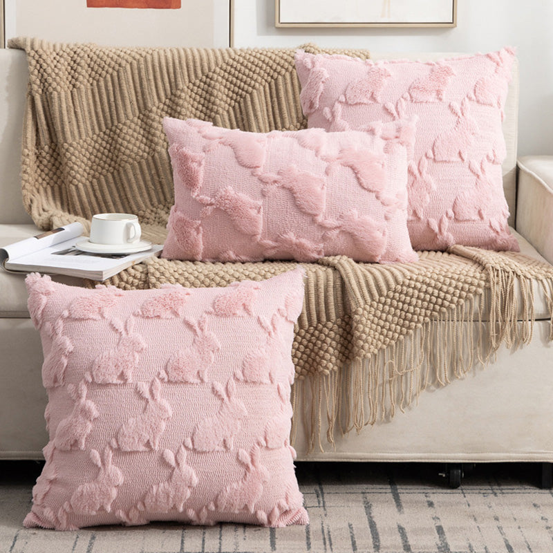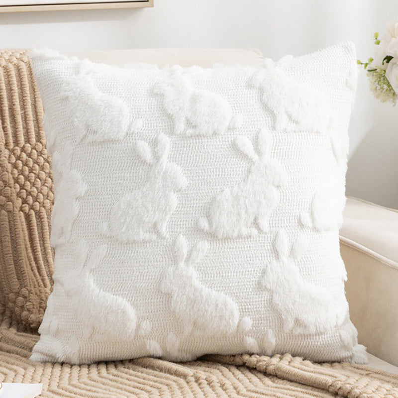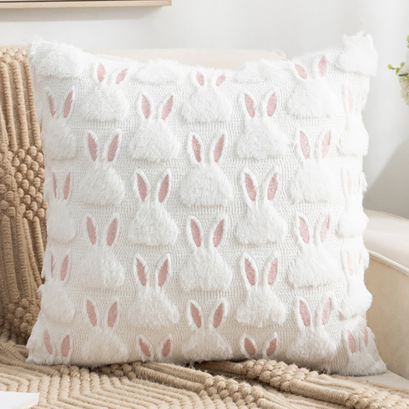 وسائد مربعة مزينة بتطريز أرنب لعيد الفصح، غطاء وسادة من فرو الأرانب للديكور المنزلي