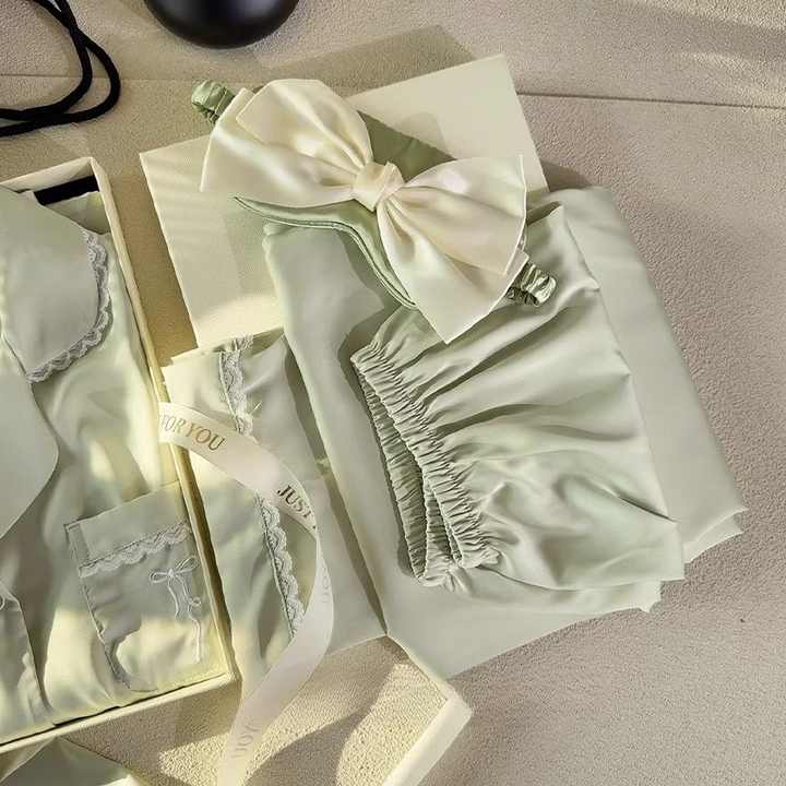 Custom Basic Regular Fit Embroidered 2 Piece Set Luxury Blank Silk Pajamas for Women Sleepwear Sets