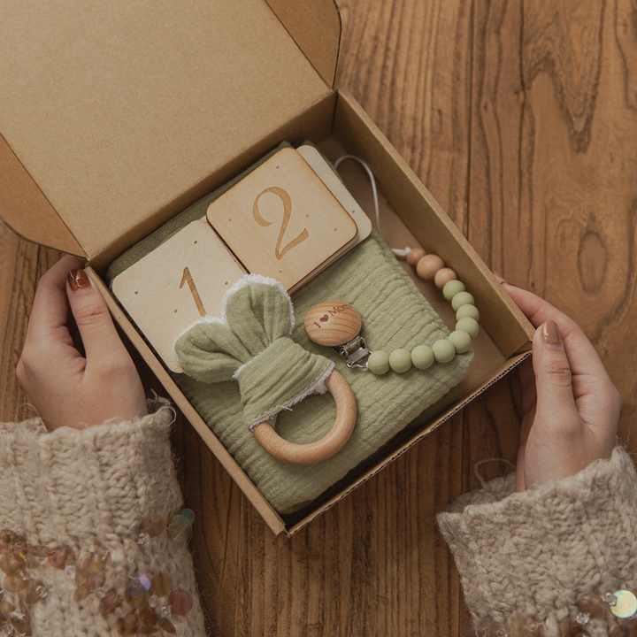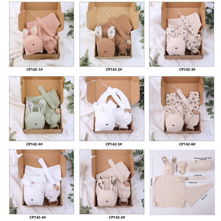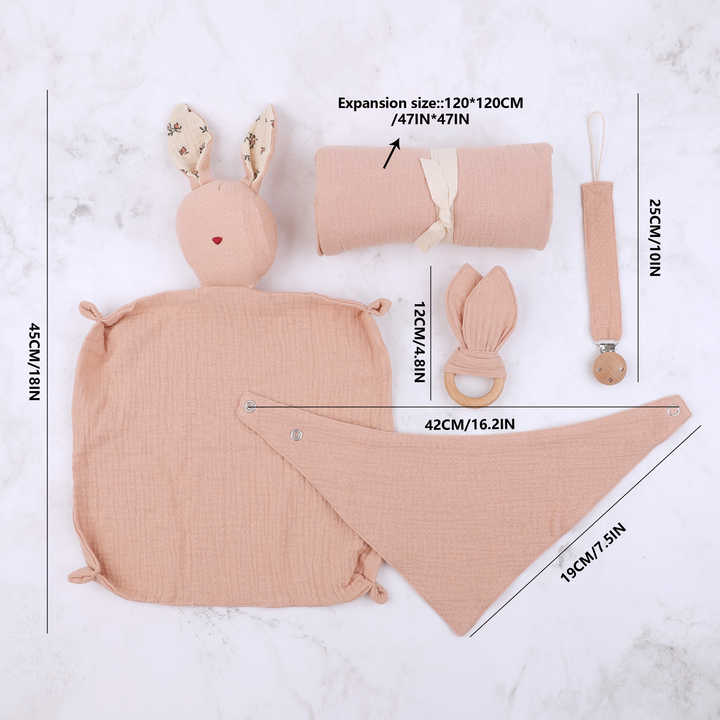 Handmade Cotton Baby Rattle Blanket Wood Teether Soother Chain Newborn Gift Set