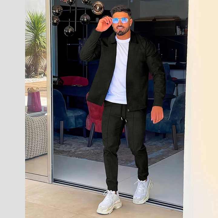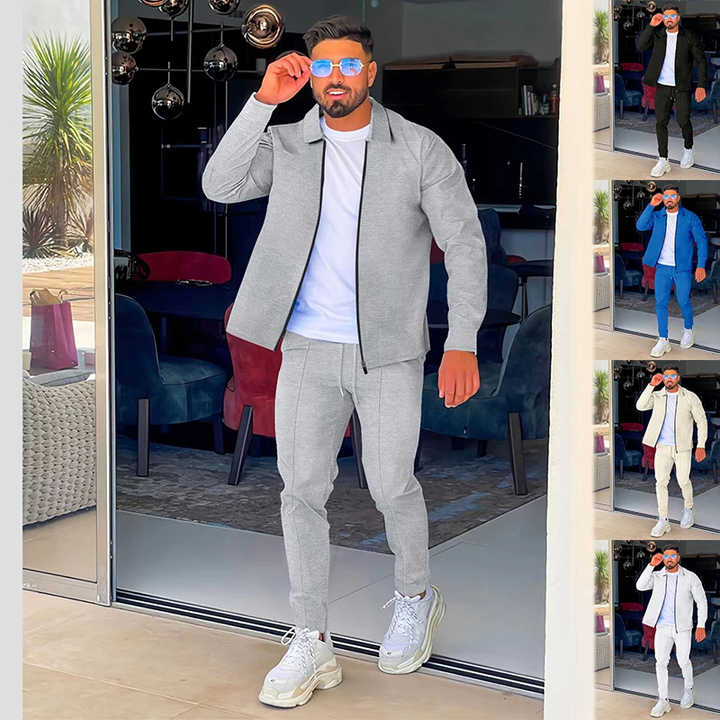 New Spring Autumn Fashion Suit Men's Clothing Streetwear Casual Zipper Lapel Jacket and Pants Two-piece Set