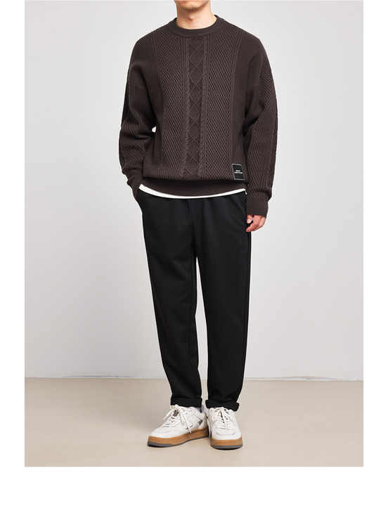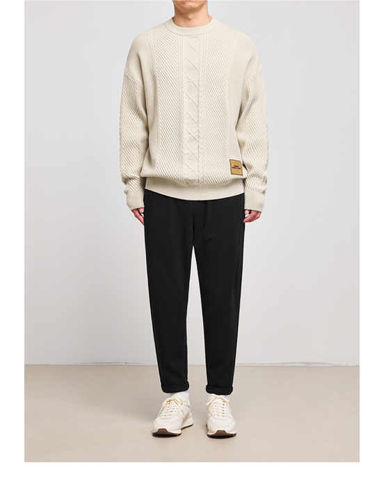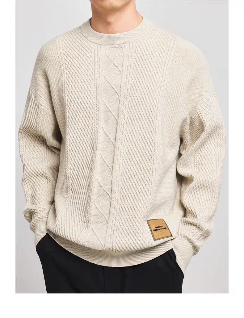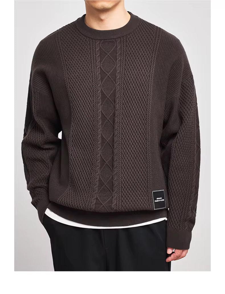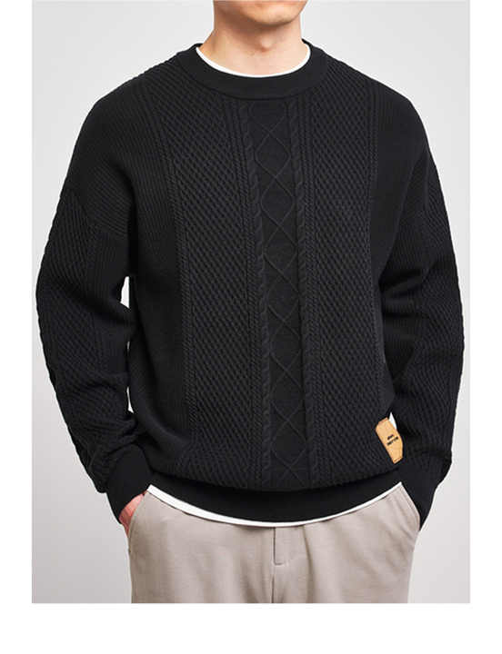 2022 Custom Logo OEM & ODM Men's Solid Twisted Round Neck Knitted Drop Shoulder Cotton Knitted Sweater Custom