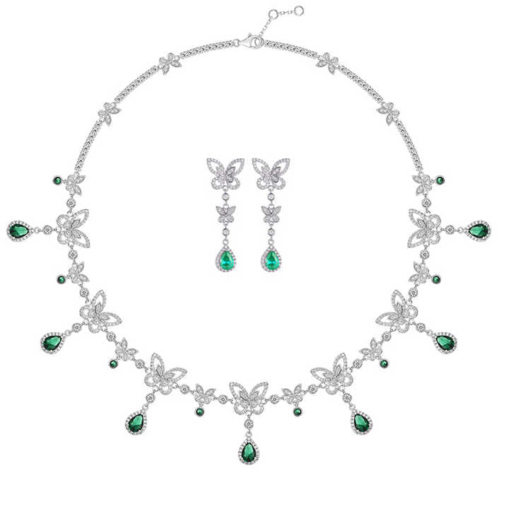 18K Gold Plated Cubic Zirconia Women's Set, Colorful Cubic Zirconia Women's Set, Butterfly Necklace, Earrings, Party Women's Bracelet, Luxury Design