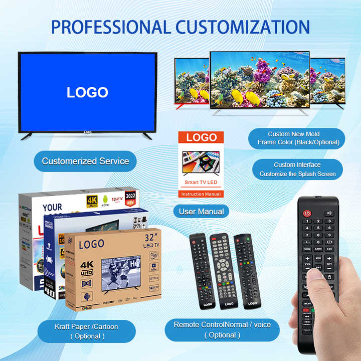 OEM Big Screen Android 4K LED Smart TVs HD Hz 43" 55" 60" 65" 72" 85" Bluetooth WiFi for Hotels