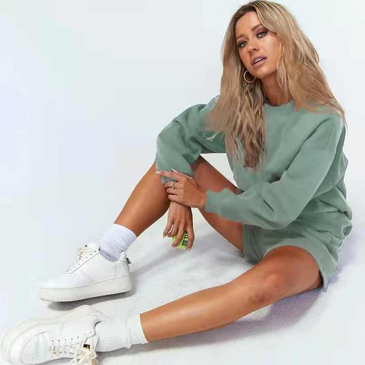 Women's Solid 2 Piece Suit Set, Shorts, Sweatshirt, Sportswear, Sweater, Women's Shorts, Long Sleeve Sweatshirt Set, Spring 2022