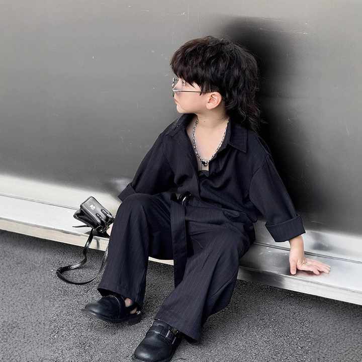 Kids Clothing Boys Spring and Autumn Casual Shirt Suit Korean Fashion Style with Stripe Pattern Children Clothes