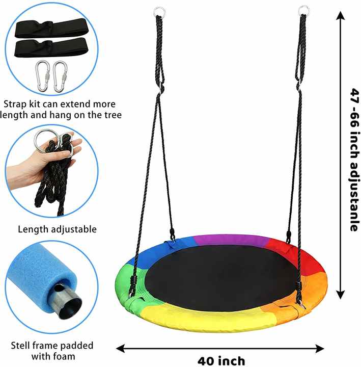 40 Inch Colorful and Unique Adjustable Hanging Circle Swing for Kids with Nest Design for Outdoor Children