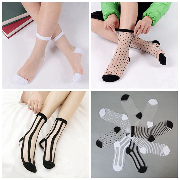 جوارب صيفية نسائية أنيقة من الشبك الشفاف، جوارب حريرية رقيقة جداً وشفافة من الدانتيل الكريستالي، جوارب كاحل مرنة للصيف