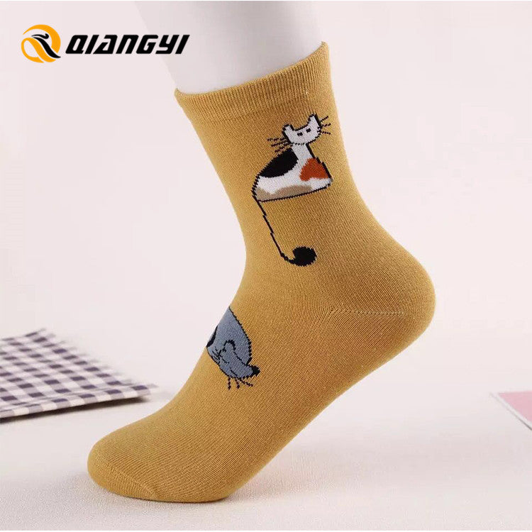 جوارب قطنية نسائية, جوارب نسائية قطنية جديدة موديل القطة ، جوارب نسائية قصيرة مرحة