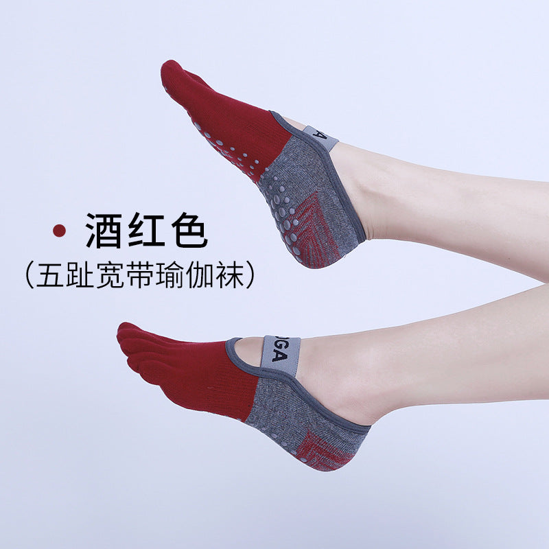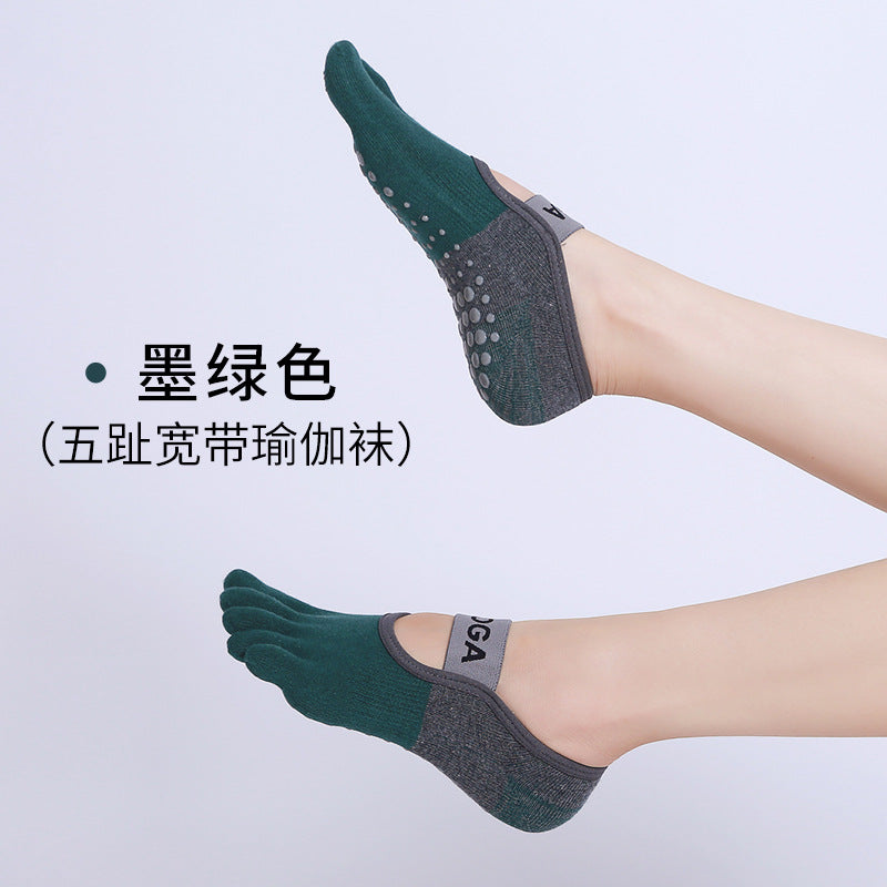 جوارب لطاقم اليوغا بخمسة أصابع مضادة للانزلاق بظهر منقط وأشرطة أصابع مكشوفة تمتص العرق واللياقة البدنية لجميع المواسم مقاس واحد يناسب الجميع