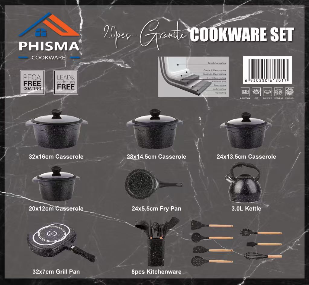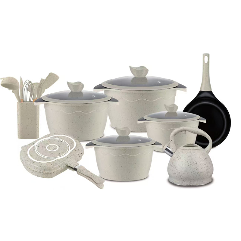 طقم طقم طقم إناء من 20 قطعة من فانوس فيزما غير لاصق طقم إناء حساء ببدلة من الألومنيوم