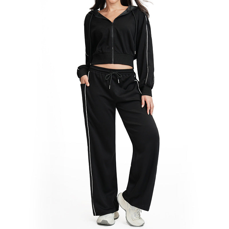 طقم رياضي نسائي من روريجال مصنوع من الرايون بشعار مخصص، بنطلون فضفاض عالي الجودة، سترة يوجا بغطاء للرأس وأكمام طويلة