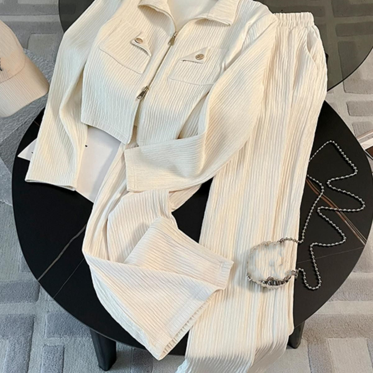 طقم ملابس خريفية شيفون صغير راقي أنيق طقم كامل ملابس رياضية غير رسمية للنساء طقم من قطعتين